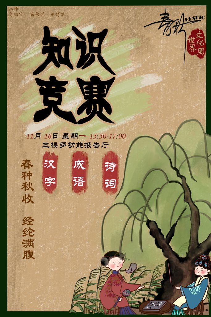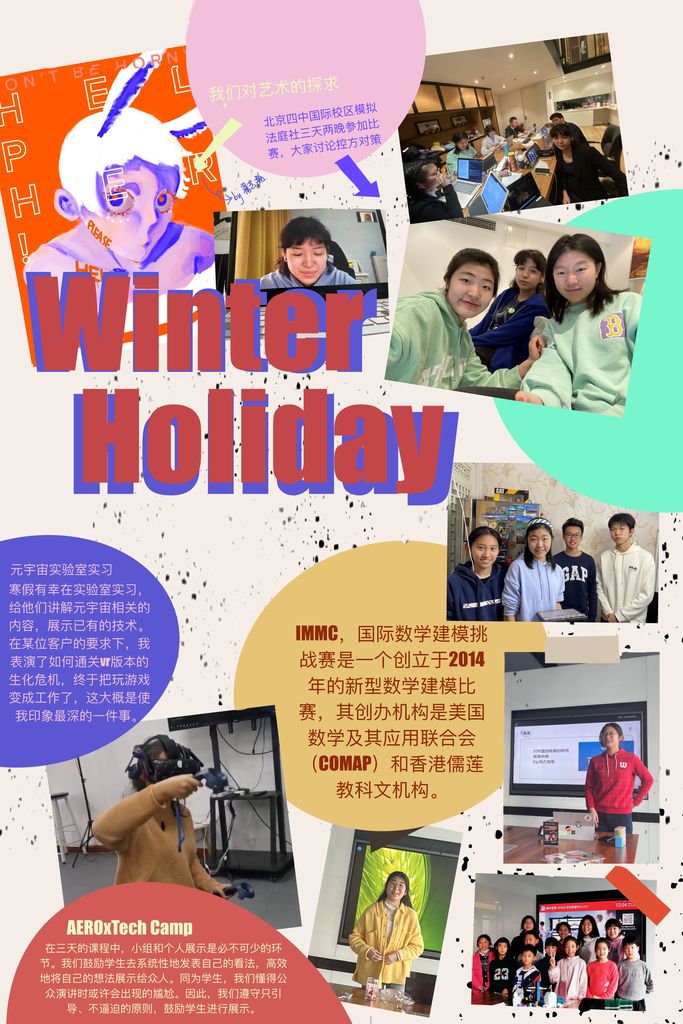 I am the commissary in charge of publicity for our class, organizing our stage performance, designing the poster for the winter vacation activities, and being the photographer during our study tour in Gansu.